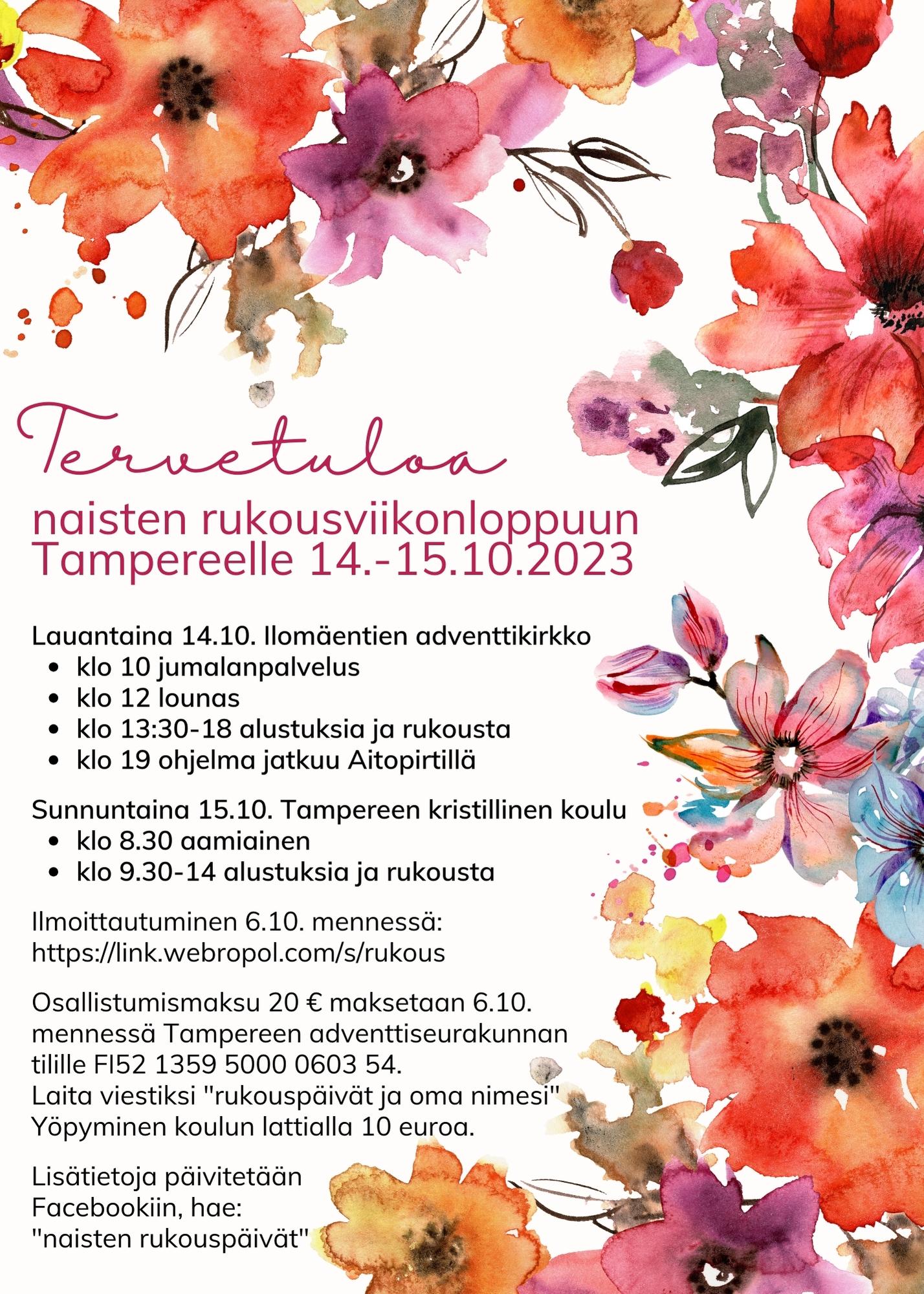 Rukoustapahtuma naisille Tampereella 14.–15.10.2023